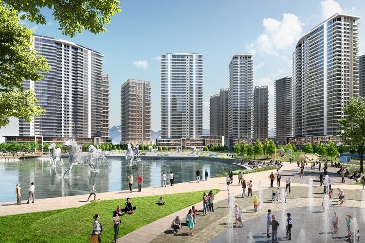 * Новый символический центр Центральной Азии с 55-этажным знаковым зданием и 500 000 м²